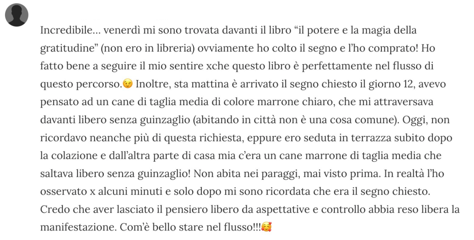 Avresti una vita colma di gratitudine, intenzionalità e abbondanza. Una vita in cui fidarti del flusso dell’Universo, ascoltando il tuo intuito e riconoscendo che alcune coincidenze non sono proprio coincidenze, ma chiari segnali della tua evoluzione personale. Sei la Creatrice della tua realtà: definisci ciò che vuoi, vivi l'energia di quella esperienza e preparati a crearla.